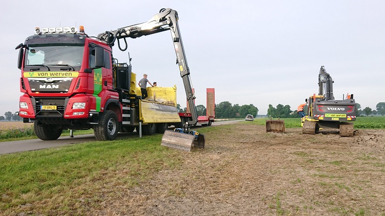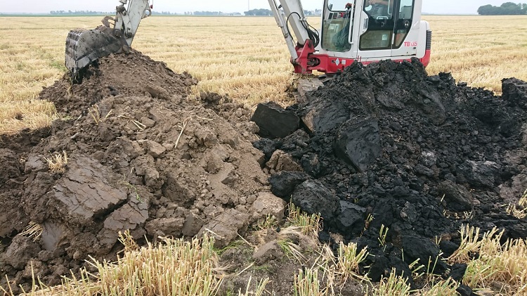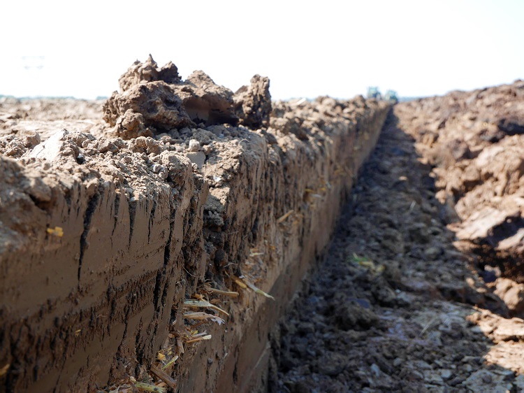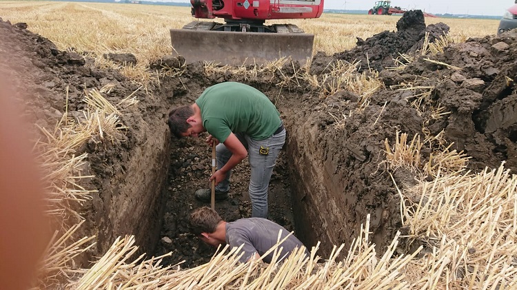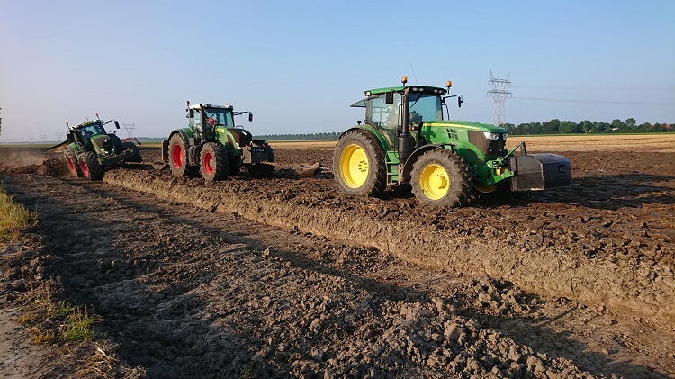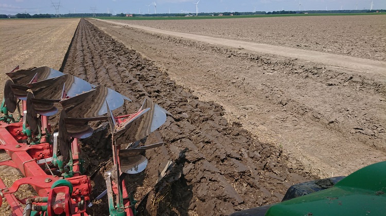 Zodra de hakselaar de wintergerst eind juni als Corn Cob Mix (CCM) van het ‘diep-te-ploegen’ perceelblok heeft geoogst, start Loonbedrijf Van Werven met het graven van acht profielkuilen om de ploegstrategie te bepalen. Uit de analyses van de putten blijkt dat in de laag van veertig tot honderdtwintig centimeter onder het maaiveld ‘de mooie grond’ zit. Ook de meeste organische stof bevindt zich onderin die laag. Het zand zit op een diepte van honderdnegentig centimeter. Besloten is om de ploegdiepte op honderdtwintig centimeter in te stellen en te gaan ploegen met twee trekkers. Dat is nodig om voldoende snelheid te kunnen opbouwen (tien tot twaalf kilometer per uur) om de humusrijke laag met gemiddeld 8,5 procent effectieve organische stof goed naar boven te ploegen. Daar vormt het de nieuwe bouwvoor van pakweg veertig centimeter diepte met een afslibbaarheid van 25 procent. Van Werven adviseert om de tochtwal, die wat hoger ligt, vooraf te egaliseren zodat overal de juiste ploegdiepte is behaald.