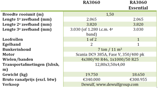 De tweerijige zeefbandrooier R3060 van Dewulf vierde vorig jaar zijn dertigste verjaardag met de RA3060 Essential. Een model van de vijfde generatie en alweer de zevende variant van deze veelzijdige verstekrooier.