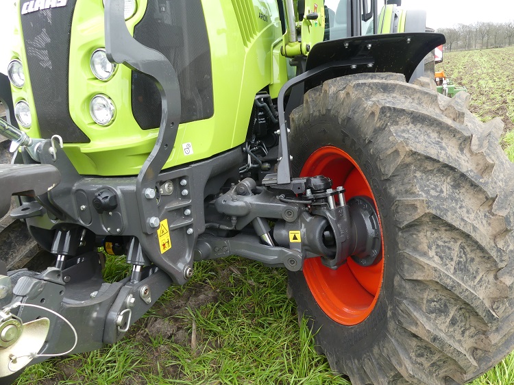De hefinrichting heeft een hefvermogen van 5750 kilogram en als optie kan deze, voor de modellen 430 en hoger, met tien procent worden verhoogd naar 6250 kilogram. Met de drie meter brede Catros heeft de trekker geen moeite om te heffen, maar om de voorwielen aan de grond te houden is een frontgewicht van negenhonderd kilogram aangekoppeld. Dat komt omdat de Catros aan de voorkant een speciale snijrol heeft die de stoppel in blokjes snijdt, dat overigens goed werkte. Maar hierdoor wordt de machine wel langer en stak de zware rol verder naar achteren. De hefarmen hebben een verbeterde vorm gekregen waardoor er meer ruimte is rond de vanghaken en deze recht ten opzichte van de machine staan.