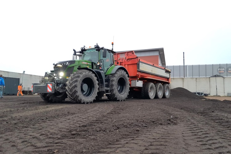 De nieuwe Fendt bewijst zijn waarde bij het bouwrijp maken van een terrein in het Zuid-Hollandse Puttershoek. Veelal trekt de nieuwe trekker daar een drie-assige Beco Maximum 360 met een inhoud van 25 kuub. Op de foto staat de 930 toevallig voor een twee-assige Beco. “Op een krappe locatie is een twee-asser natuurlijk wat kleiner en wendbaarder.”