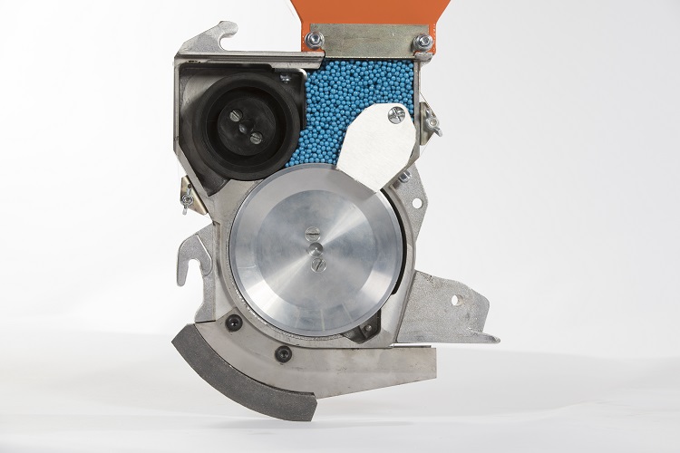 Het zaad valt vanuit de trechter in een selectiekamer die verticaal boven het celwiel is gepositioneerd, hier vullen de zaden de individuele cellen terwijl het celwiel en de de flectorschijven tegen de klok in draaien. De deflector schijf rolt overtollig zaad zachtjes weg van het wiel om ervoor te zorgen dat er slechts één zaad per cel is. Het zaaduitwerppunt bevindt zich aan de onderkant van de eenheid, dicht bij de grond, waar een speciale uitwerpplaat zorgt voor een precieze, consistente uitwerping van het zaad om een nauwkeurige zaadafstand te behouden.