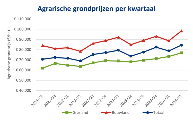 Agrarische grondprijs is in het tweede kwartaal 2024 met 7,1 procent gestegen