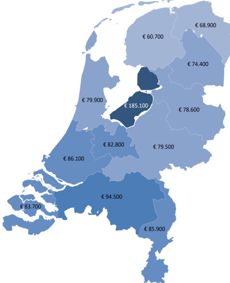 68.900 euro in Groningen en 94.500 euro per hectare in Noord-Brabant.