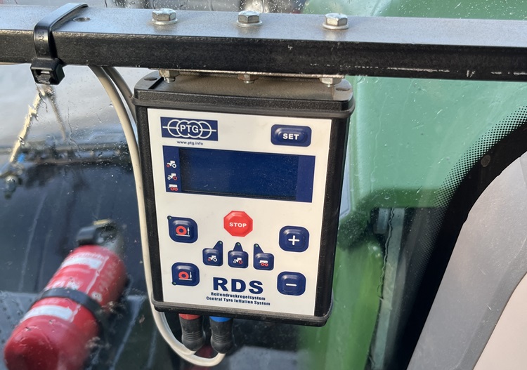 De getrokken Horschveldspuit op dit bedrijf is ook uitgerust met een luchtdrukwisselsysteem. Deze investering is gedaan in 2021, waarbij een PTGsysteem is geïnstalleerd. Het duurt slechts drie minuten om van 0,6 naar twee bar te gaan. Deze akkerbouwer heeft percelen van ruime omvang, die tevens ver van elkaar verwijderd liggen, dus het snel wisselen tussen bandenspanningen is gewenst. “Hierdoor kan ik eerder het land op gaan na een regenbui. Dit heeft dus zowel ecologische als economische voordelen.”