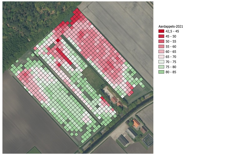 Een gemiddelde waarde per perceel is een interessante snelle vergelijking, maar interessanter wordt het als je ook de gebruikte rassen kunt vergelijken, of de zaai- en pootdatum. Ook daar kunnen interessante patronen in naar voren komen.