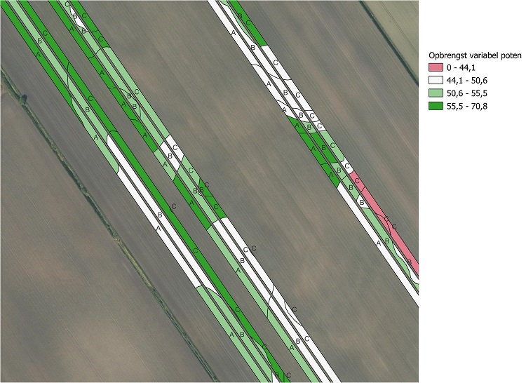 Door opbrengstgegevens over de jaren heen te vergelijken komen de jaarlijks terugkerende patronen, ook over gewassen heen, naar voren. Deze patronen worden vaak uitgedrukt als bodempotentie. Het vraagt wat meer analyse en databewerking om de relatieve opbrengst te bepalen en daarmee bijvoorbeeld de delen van het perceel die structureel een boven gemiddelde opbrengst leveren in beeld te brengen.