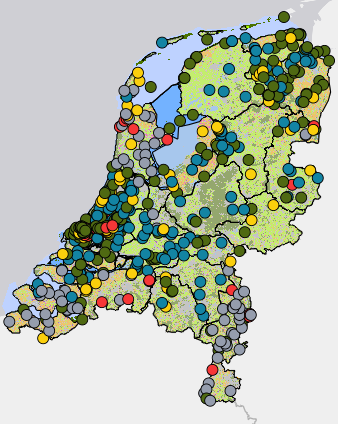 Bron: Vijver M.G., Zelfde M. van ‘t, Tamis W.L.M., Musters C.J.M. & Snoo G.R. de (2008), Spatial and temporal analysis of pesticides concentrations in surface water: pesticides atlas., Journal of Environmental Science and Health part B 43: 665-674
