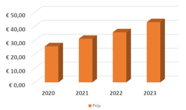 Agrico communiceert met haar leden ook een gemiddelde prijs voor al het geleverde product, oftewel een prijs 28mm opwaarts. Dit jaar komt deze prijs uit op € 43,20 per 100 kg voor pootgoed oogst 2023. De afgelopen jaren steeg het prijsniveau met gemiddeld 18% per jaar.