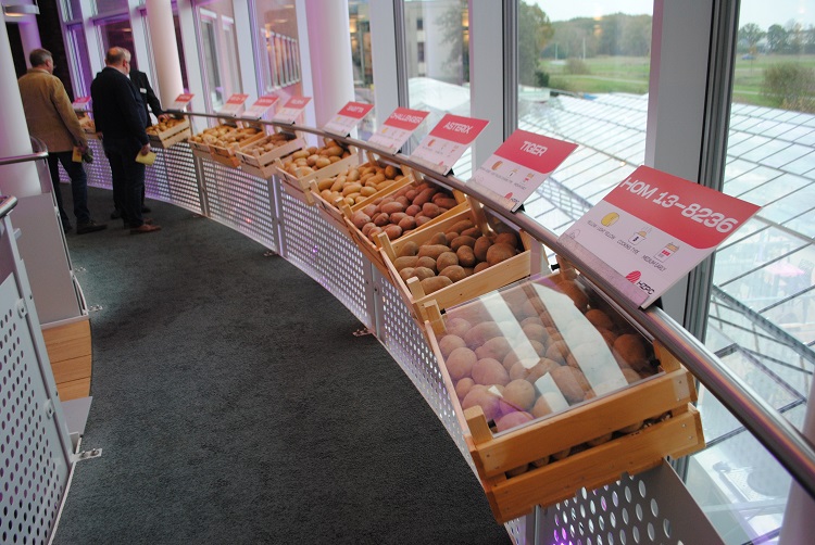 Op de eerste verdieping van het hoofdkantoor van HZPC is één kistje waarover een glazen plaat ligt. De enige, zo blijkt. In het verleden wilden internationale bezoekers stiekem nog weleens wat uitgangsmateriaal meenemen. Met de HOM 13-8236 wil het aardappelhandelshuis uit Joure dat kosten wat het kost voorkomen. “We hebben hier een rijtje staan met rassen waar we letterlijk de schijnwerpers op hebben gezet. Dit zijn de spotlight-aardappelen, die een grote kans hebben om het goed te doen.” Het zegt volgens Peter Kreijger veel dat hoewel de HOM 12-8236 nog maar een nummer is, en dus nog niet toegelaten is op de rassenlijst, dit ras wordt uitgelicht.