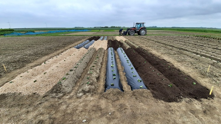 Op dit moment voert Delphy op proefboerderij Rusthoeve in Colijnsplaat een proef uit met verschillende soorten grondbedekkingen; compost, folie, gehakseld olifantsgras en onbedekte ruggen. Over de uitkomsten is nu nog weinig te zeggen, maar de ruggen die onbedekt zijn, daar staat veel onkruid. Daarom willen veel telers volgens Cammaert niet meer zonder.