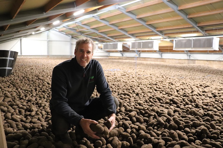 Geraats: “Ik denk echter dat natuurlijke koeling steeds moeilijker zal worden als we steeds zachtere winters krijgen, dus willen Bert en ik de komende jaren vooral investeren in mechanische koelingssystemen.” In het gedeelte met mechanische koeling kan Geraats de aardappelen met weinig gewichts- en kwaliteitsverlies bewaren. Hij probeert de indroging op maximaal vier tot vijf procent te houden, bij levering in juli. “De uitdaging is om onder de vier procent te komen. Dat betekent minder ventileren, maar geeft ook een risico, ze mogen niet gaan rotten natuurlijk. Het blijft balanceren om goed te kunnen bewaren, het is echt een vak. Wat cruciaal is en blijft, is de kwaliteit van de partij die ingeschuurd wordt.”