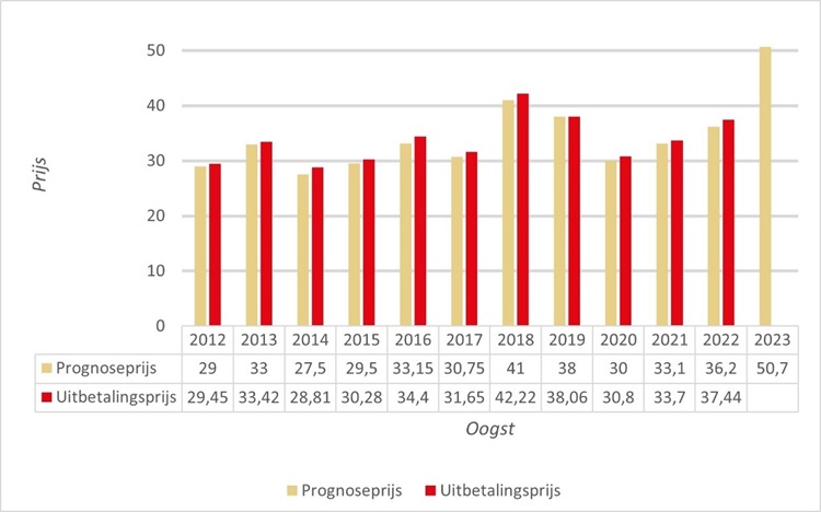 De prognoseprijs voor pootgoedtelers van HZPC Holland voor de oogst van 2023 is 50,70 euro per 100 kilo. Deze prijs is ruim 35 procent hoger dan de prijs van oogst 2022.