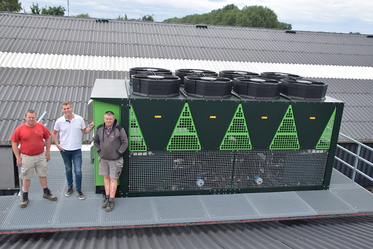 Voor het bewaren van de aardappelen maken ze bij Serry gebruik van een mechanische koelinstallatie van Tolsma. “We hebben zowel cellen met bovengrondse koepels als cellen met roosters waar er volledig onder de aardappelen wordt geventileerd door betonnen roosters. Via namontage door de Gentse firma Morti werden er verdampers opgehangen.” Peter de Waal van Tolsma vertelt dat het gaat om indirecte koeling op propaan glycol. “Op het dak staat er een buitenunit met propaan, via leidingen wordt er water met glycol naar de verdampers gepompt. Dat is een natuurlijk koudemiddel, vrij van freon en dus milieuvriendelijk. Akkerbouwers kunnen hiervoor ook rekenen op VLIF steun.