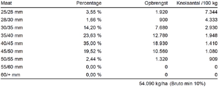 Opvallend is de toename van het aantal uien in de categorie 60mm+ in de fertigatieproef. Dat steeg na het ondergaan van fertigatie met zestig procent.
