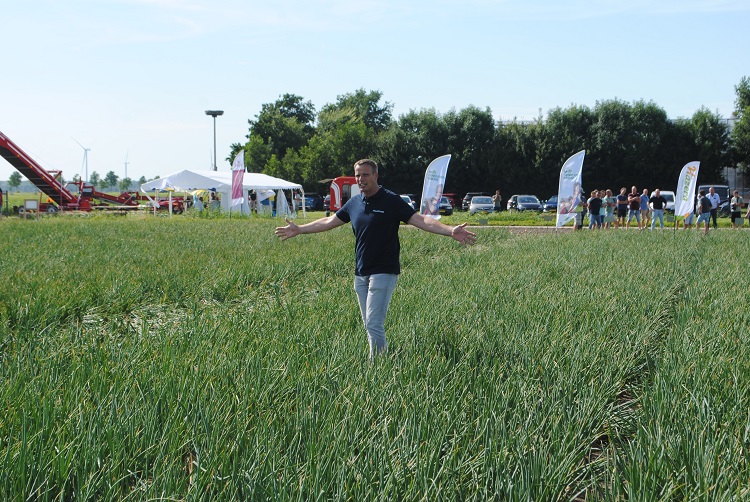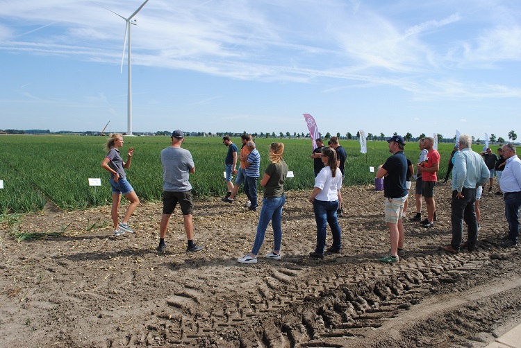 Flevotrade heeft tijdens de demodag naast de veredeling ook de schijnwerpers op andere zaken gezet om de teelt van uien robuuster te maken. Zo vertelde Job Simmes van Pireco over de inzet van biostimulanten. “Uiteindelijk zien we dat we met kruidenextracten en algen de plant weerbaarder kunnen maken bij stress.” Edward Nijp van Flevodrip ziet positieve effecten van druppelirrigatie. In het perceel lag driptape van Toro en dat heeft succes. “Vooral met slechte beschikbaarheid van water, en als er geen water van bovenaf komt, zien we goede resultaten. Water komt direct op de plek waar je het wilt hebben op het juiste moment. Dit bespaart water, brandstof, we verwachten dat de ui minder stress heeft en het heft korst op.”