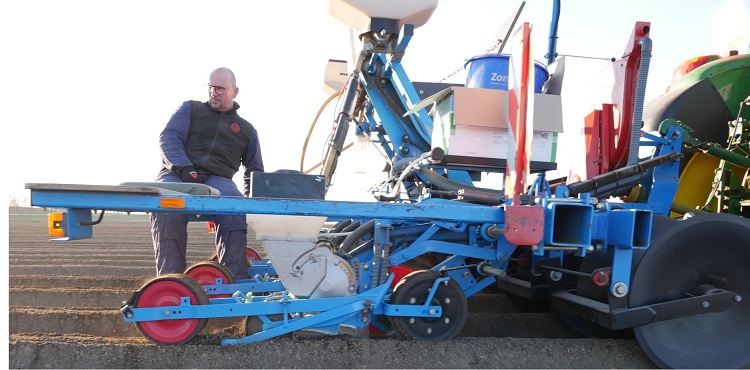 Het geprimede zaad is voorzien van de groene basis coating om een snelle en uniforme opkomst te bevorderen. Daarbij zaait Heyboer 20 kg Physiostart per hectare startmeststof bij. Per hectare worden 600.000 tot 700.000 zaden in de ruggen gezaaid door de Monosem wortelzaaier die is uitgerust met een vijf centimter breedwerp kouter.