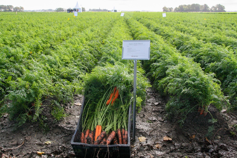 Op het vlak van nieuwe rassen konden de bezoekers de ontwikkelingen zien van twee ‘nieuwe’ spelers op de peenmarkt: Takii en Carosem. Takii is al wel langer actief op de peenmarkt maar dan vooral met rassen van het conische kuroda-type. Het bedrijf heeft nu twee rassen ontwikkeld, Gladius en Rapier, waarbij veel meer eigenschappen van het cilindrische Nantes-type zijn ingekruist. Zowel Chris Matthijsse als Paul Leenheer van Takii zijn enthousiast over beide nieuwe rassen. “Ze doen het goed in het veld, zijn sterk tegen Alternaria en Cavityspot, hebben een mooie kleur en smaak en vooral Rapier is goed bestand tegen warmte”, vertelt Matthijsse. Collega Leenheer wijst op de potentiële lage breukgevoeligheid van beide rassen. Komende oogst en bewaring zal dit verder moeten onderschrijven. Zoals het er nu naar uitziet zijn beide rassen vanaf teeltseizoen 2023 voor alle peentelers beschikbaar.
