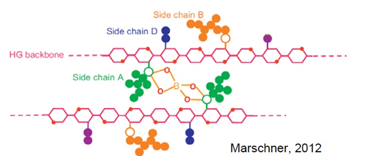 Borium is belangrijk voor de suikerbietenplant om het meristeemweefsel in de hartbladeren goed te laten ontwikkelen. In celwanden versterkt het de structuur door langere celluloseketens met elkaar te verbinden en zo de plant stabiliteit te geven (zie afbeelding).