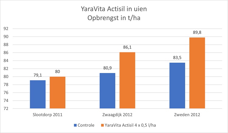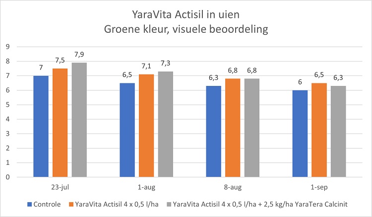 De ui is een gevoelige plant en heeft naast een goede voeding ook extra versterking nodig tegen stress. Met YaraVita Actisil is silicium in de best opneembare vorm aan de plant gegeven. Dat zorgt voor een sterkere plant en een hogere opbrengst.