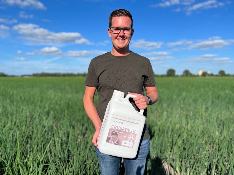 Crusade HF zorgt als hulpstof voor een sterk driftreducerende werking en verbetert de werking van actieve stoffen op het blad. Het afgelopen jaar liet de hulpstof zijn meerwaarde al zien in de bestrijding van phytophthora in aardappelen en de meeldauwbestrijding in uien. “Crusade HF is ook vooral nuttig als het spannend gaat worden. Over phytophthora valt het nog niet te zeggen. In uien is het nu wel al echt spannend. De aantasting door valse meeldauw is serieus. Dat vraagt om een extreem goede bestrijding en dat is echt nog niet zo simpel.”