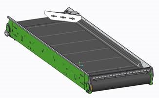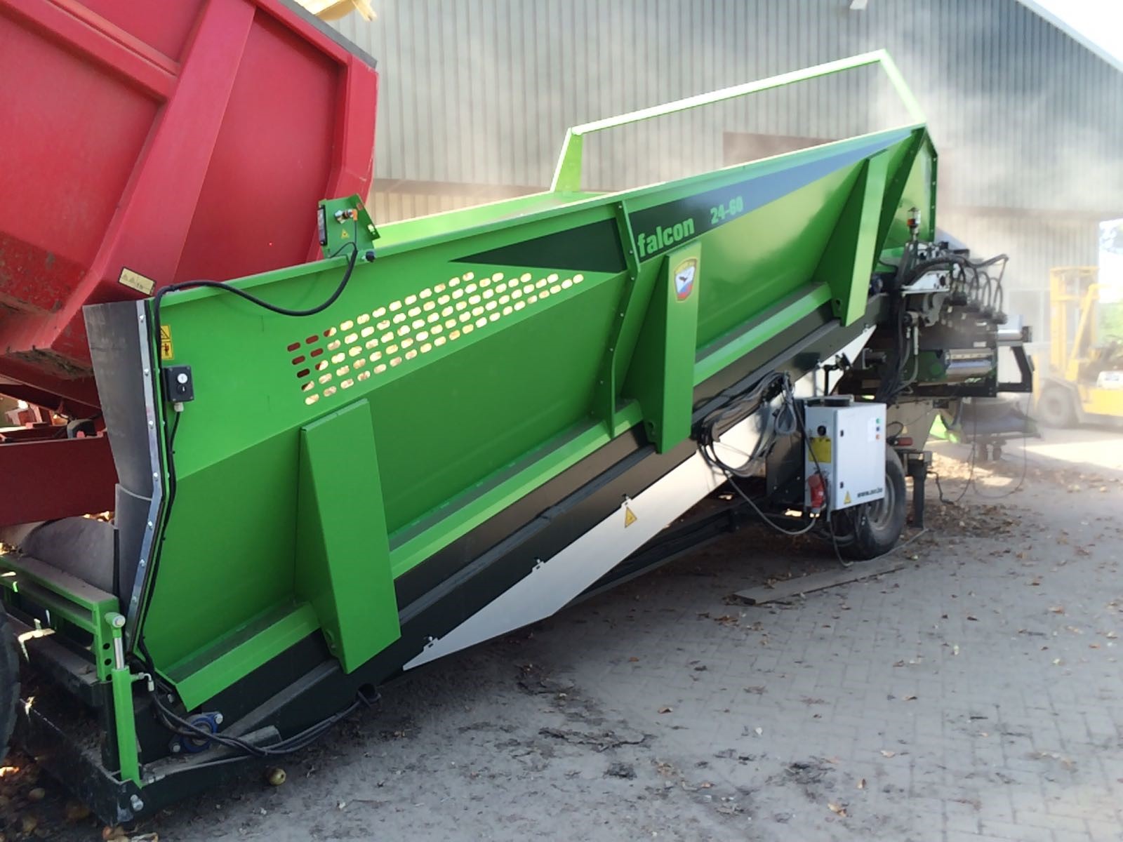De afvoerbanden van de Falcon zijn allemaal 80 cm breed. Bij kleine transportbanden (vaak 65 cm) die na de afvoerband komen kan de instorttrechter te smal zijn, waardoor gemorst wordt. Door deze simpele schuif te monteren kan de product- of grondstroom versmald worden, om morsen te vermijden. De schuif is traploos instelbaar en versmalt de band tot maximaal ca. 60 cm. Als de schuif niet meer nodig is, kan ze snel en eenvoudig gedemonteerd worden.