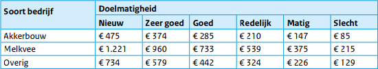 Is de kwaliteit van het bedrijfsgebouw slechter dan de kwaliteit die over het algemeen kan worden verwacht van een gebouw van die leeftijd? Dan kiest u voor een lagere doelmatigheidscategorie, met de daarbij behorende lagere pachtprijs.