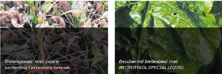 “Door Microthiol Special Liquid drie liter per hectare toe te voegen aan de eerste bespuitingen tegen Cercospora die eind juni en in juli uitgevoerd worden blijkt de schimmel Cercospora beter beheersbaar in de maanden augustus en september.”