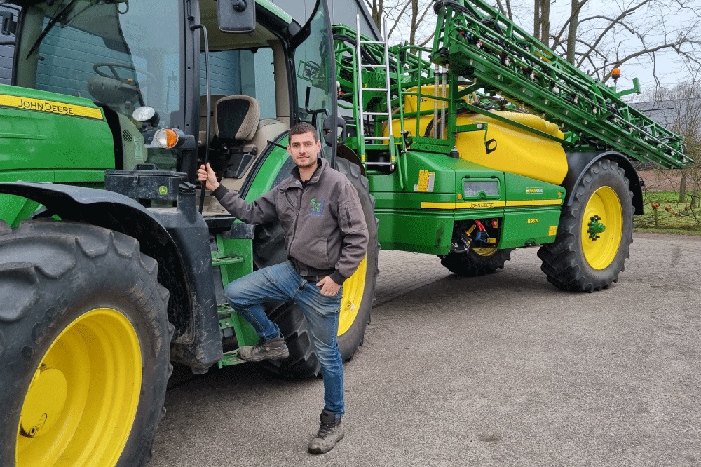 Toen Frank in 2015 in maatschap kwam, zijn de loonwerkzaamheden alleen maar verder uitgebreid met ploegen, dorsen en spuiten. “intussen hebben we ongeveer 280 hectare, inclusief ons eigen land, waarvan we het spuitwerk bij moeten. En dat is goed te doen. Je hebt hier de meest mooie grote percelen. Dan kun je soms wel 15 hectare per uur spuiten.”