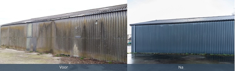 “De renovatie is alles bij elkaar heel vlot verlopen”, zegt Van Waes “Het verwijderen van de oude asbestplaten duurde ongeveer een dag. Het ging daarbij om circa 900m² dak en wand met asbest.” Het slopen, afvoeren en saneren is heel netjes en vlot gedaan door Middendorp. “Na de sanering heeft Middendorp in een kleine 3 dagen de nieuwe damwandplaten gemonteerd. De renovatie is binnen 4 dagen voltooid.”