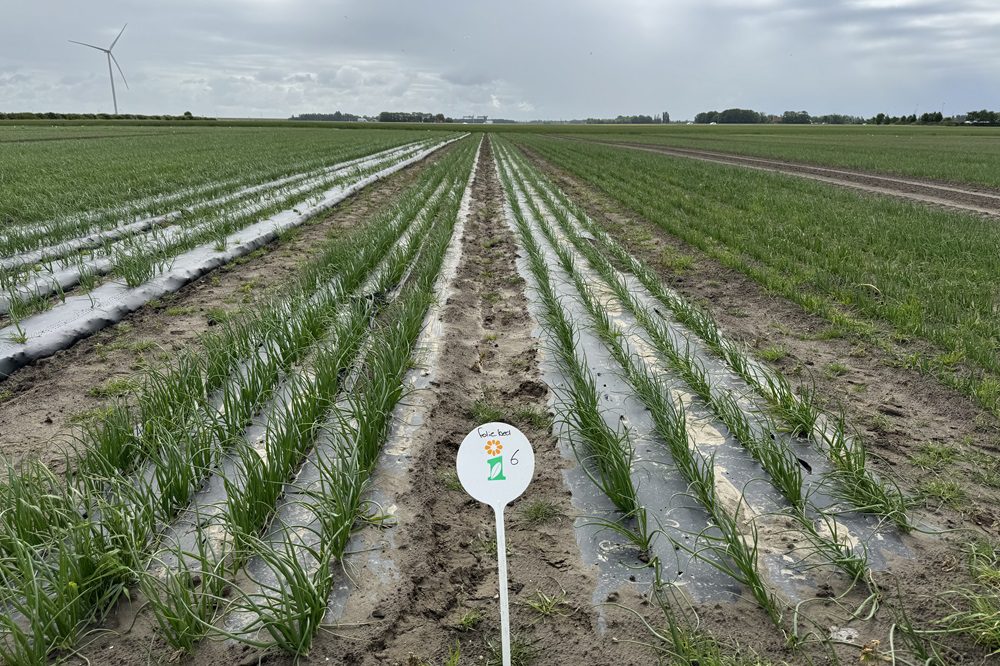 De inspiratie voor dit onderzoek komt uit Italië, waar uien in kassen soms al onder biologisch afbreekbare folie worden geteeld. In onze proef werken we met vier objecten: een vlakveldse toepassing en een toepassing op ruggen van 75 centimeter allebei met en zonder folie.