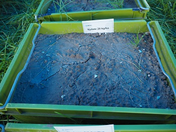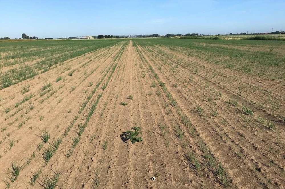 Bakkenproef uitgevoerd door PPO-Lelystad in 2020. Aan de zijkant van de bakken zijn twee rijtjes uien gezaaid.