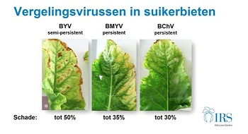 De meest voorkomende soorten vergelingsvirus zijn BYV, BMYV en BChV  (Bron: IRS)
