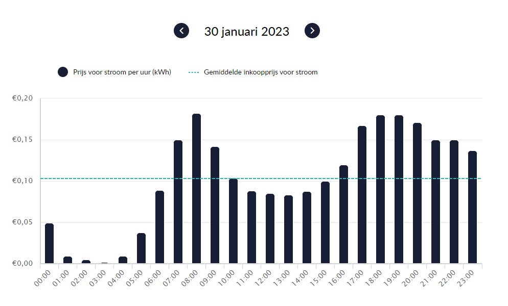 Voorbeeld van sterk wisselende stroomprijzen per uur.