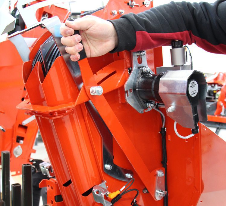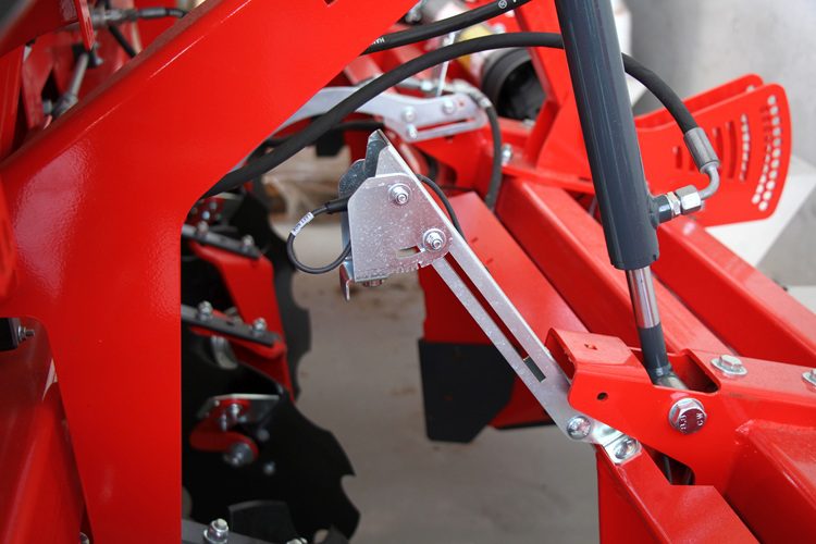 Dit moet een precieze afleg en pootafstand waarborgen. De ruimte in het pootkanaal kun je zonder gereedschap verstellen met het oog op andere potermaten en -vormen. Dit doe je per pootelement afzonderlijk. Een schaalverdeling ontbreekt tot dusver. Wel kun je vanaf opzij gezien de hendels visueel uitlijnen.