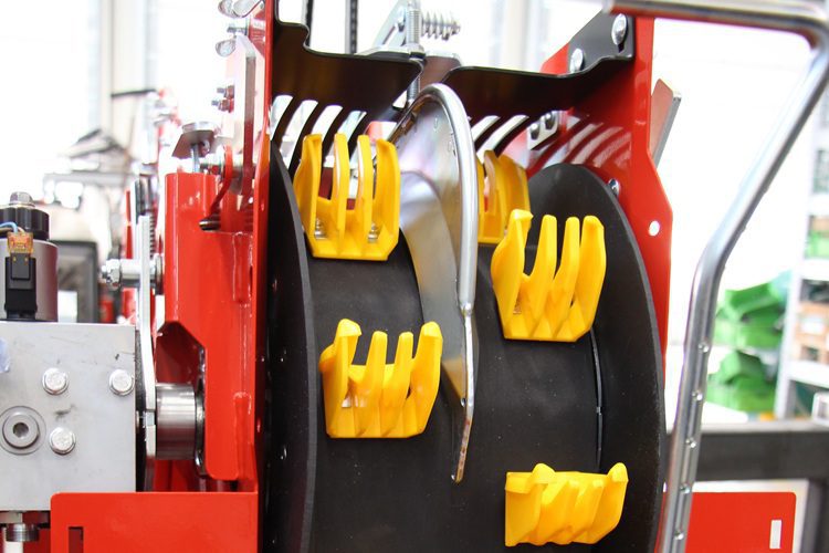 De meeste gebruikers kiezen voor gele pootbekers die pootgoed van 30 tot 55 millimeter aankunnen. De paarse pootbekers zijn qua omvang vergelijkbaar maar zijn dieper en kunnen harder trillen. Dit met het oog op het gebruik van gesneden pootgoed. De intensiteit van de trillers stel je per rij in. Voor het wisselen van bekerriemen kun je de bekerriem met twee hendels ontspannen. De toestroom van de knollen uit de bunker is nu makkelijker te regelen met een chokeplaat met een positie achter de bunker en een langere handgreep.