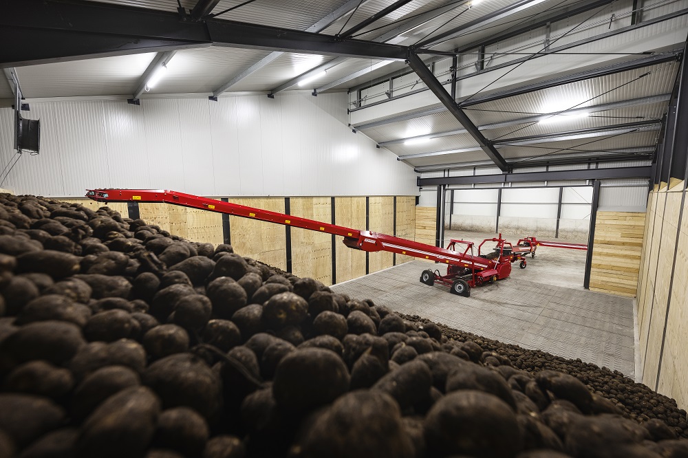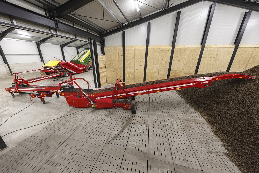 Bij het laden van aardappelen zien we de nieuwe hallenvuller SL 919 met een 90 cm brede en 19,5 m lange transportband alsmede Quantum-aannameband, voor grotere zwenkwijdtes bij gelijktijdig constant lage valhoogte. Daarnaast wordt er met een stortbunker, RH 24-60 Combi met kluitenscheider, duobanden en de kistenvuller GBF gedemonstreerd.