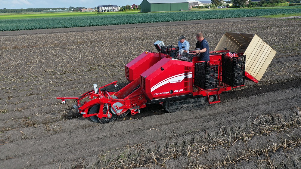 Nieuwe vierrijige bekerpootmachine PRIOS 440 van Grimme