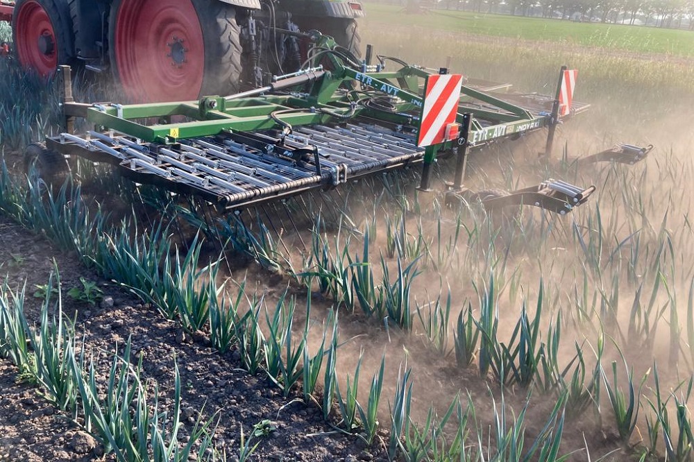 De Novaxi heeft volgens Van den Akker verschillende onderscheidende kenmerken. “Zo heeft de wiedeg een hogere vrije doorgang, waardoor het mogelijk is ook te eggen tussen hogere gewassen, zonder plantschade te veroorzaken. Denk bijvoorbeeld aan prei.” Wat ook onderscheidend is, is de instelbaarheid van de druk op de tanden. De druk kan hydraulisch worden versteld van tweehonderd gram tot vijf kilogram. “Je kunt afhankelijk van het gewas of grondsoort lichter of zwaarder gaan eggen. De druk kun je ook af laten nemen als je bijvoorbeeld de korst hebt doorbroken. De druk kan dan worden afgesteld op de diepte-aanslag. Hierdoor blijft het zaadje liggen en beschadig je dat niet.”