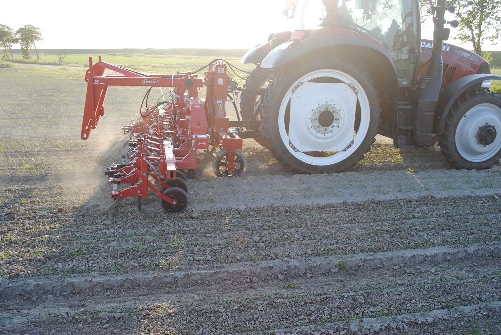 Na de proefboerderij in Ebelsheerd draait op het akkerbouwbedrijf van Poelma de Simply Smart Side Shift voor het eerst bij een teler. Met een werkbreedte van 4,5 meter, een rijafstand van 30 centimeter en schoffels op 22 centimeter (voor loonwerk, op het eigen bedrijf hanteert Poelma schoffels van 26 centimeter) gaat de machine feilloos door de uien. En dat was de wens.