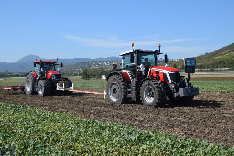 Daarna werd er een testje gedaan om het brandstofverbruik in kaart te brengen. Een Massey Fergusson 8S.265 werd uitgerust met Evobib VF 710/70R42- en VF600/70R30-banden. De belasting op de achteras bedroeg 9,2 ton, op de vooras 4,4 ton. De tractor moest in het veld een andere tractor met grondbewerkingsmachine aan een vaste snelheid voortslepen over een bepaalde afstand. In een eerste situatie werd er gewerkt aan een druk voor op de weg: 1,2 bar vooraan en 1,6 bar achteraan.