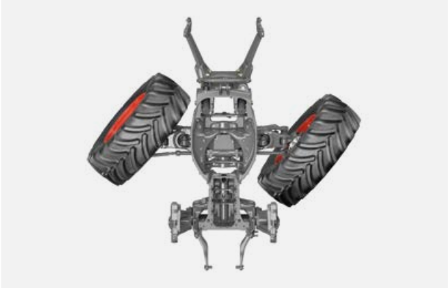 Een mooie technologische ontwikkeling, aangezien een ‘lange’ wielbasis vaak niet samengaat met één goede wendbaarheid. De CLAAS ARION 400 serie beschikt over een innovatief massief gegoten frame met geïntrigeerde carterpan. Zo hoeft er bij montage van een fronthef of voorlader geen extra versteviging worden aangebracht aan de zijkant van het frame. Hierdoor blijft de trekker in het midden smal, zoals een wespentaille en dat zorgt voor een grote stuuruitslag en een korte draaicirkel.