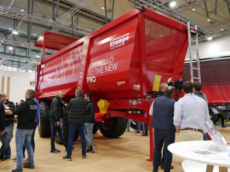 Krampe toonde een robuuste veertig kuubs Probody 760 kipper met hydraulische vering. Technisch gezien is een laadgewicht van 22 ton product mogelijk, zolang er niet over de openbare weg gereden wordt. De toegestane aslast bij veertig kilometer per uur is namelijk dertien ton. In combinatie met het eigengewicht van acht ton is het advies is om op de weg maximaal zeventien ton te vervoeren. De diverse hydraulische functies zijn via Isobus aan te sturen.