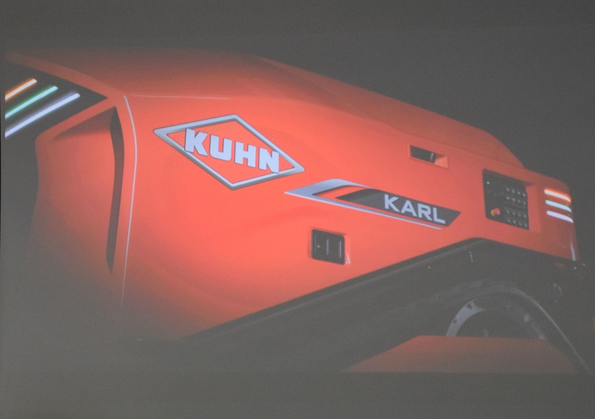 Tijdens een evenement voor de internationale pers toonde CEO Thierry Krier een gedeeltelijke foto van ‘Karl’. Karl is het antwoord van Kuhn op de robotisatie in de landbouw.