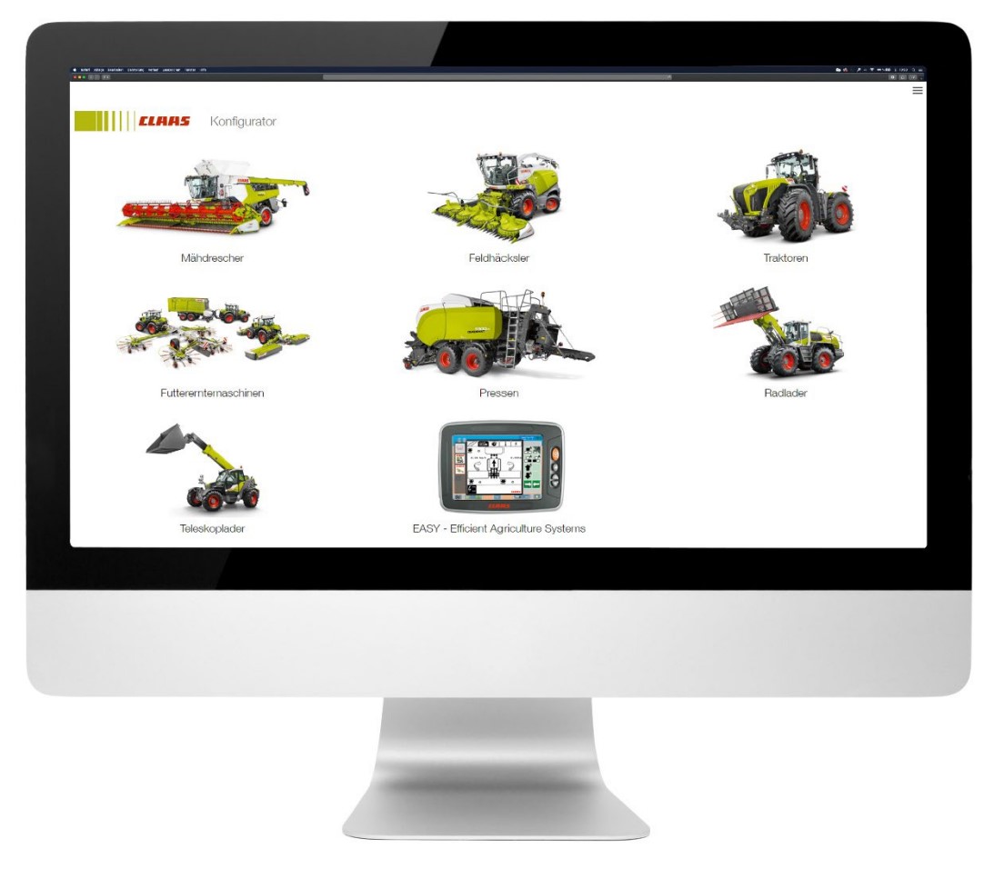 De configurator genereert de juiste Claas machine voor de klant aan de hand van verschillende opties. Productgroepen kunnen naar keuze zijn geconfigureerd, er kunnen voorgestelde mogelijkheden worden gekozen en machines kunnen individueel worden aangepast.