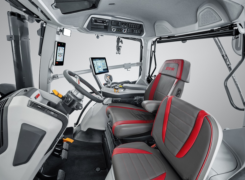 Verdere verbeteringen van het cabine-interieur omvatten een nieuw tablettype display in de A-stijl met een unieke Steyr-interface. Het nieuwe display bevat glasheldere figuren en symbolen die op een eenvoudig te begrijpen en logische manier zijn ingedeeld, en die beter zicht op de belangrijkste bedrijfsgegevens en aanpasbare instellingen van de tractor bieden.