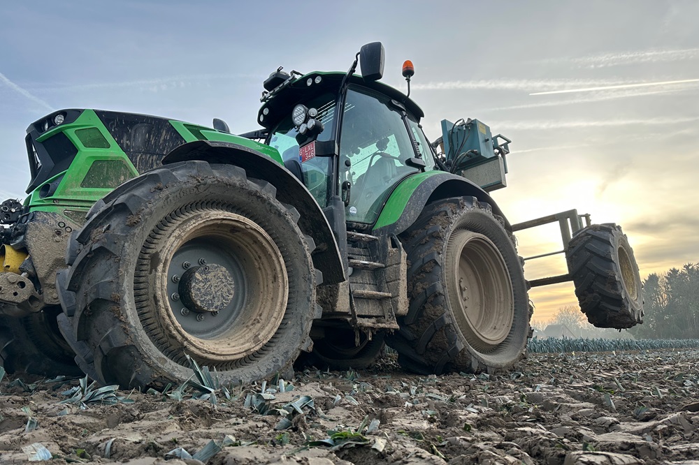 De eigen percelen waar prei geteeld wordt, liggen vlak bij huis en dus is het mogelijk om op lage druk naar de boerderij te rijden. “Wij hebben geen bandendrukwisselsysteem maar Molcon Interwheels adviseerde ons wel om dat te voorzien omdat dit de levensduur van de banden ten goede komt.