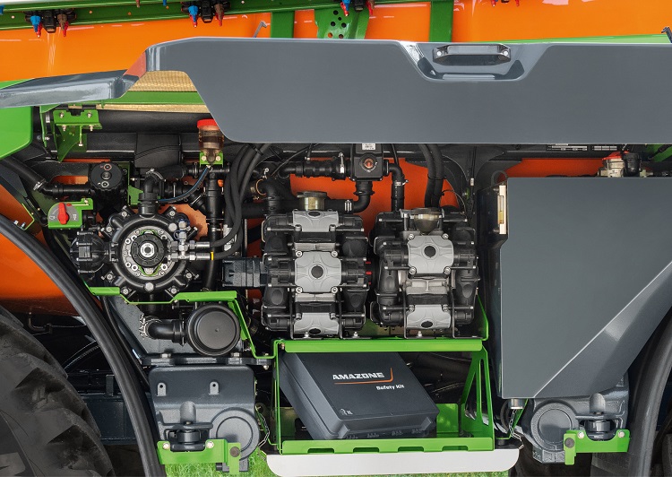 De nieuwe cabine biedt een moderne werkplek met uitstekend zicht rondom. In drie uitrustingsvarianten blijft er voor de klant geen wens onvervuld op het gebied van comfort. Voor de hoogst mogelijke veiligheid op de werkplek zorgt de cabineluchtfiltering volgens de Cat. 4-norm. De nieuwe armsteun onderscheidt zich door een uiterst opgeruimd en ergonomisch ontwerp. Hij is speciaal op de functionaliteit van de zelfrijdende veldspuit afgestemd en stelt alle belangrijke functies op elk moment binnen handbereik ter beschikking. In het kader van de twee-terminalstrategie is de 7 inch grote AmaDrive-terminal voor de bediening van het basisvoertuig verantwoordelijk, terwijl de veldspuittechniek via een ISOBUS-terminal wordt bediend. Alle belangrijke veldspuitfuncties kunnen bovendien vrij aan de knoppen van de ISOBUS-compatibele rijhendel worden toegewezen.