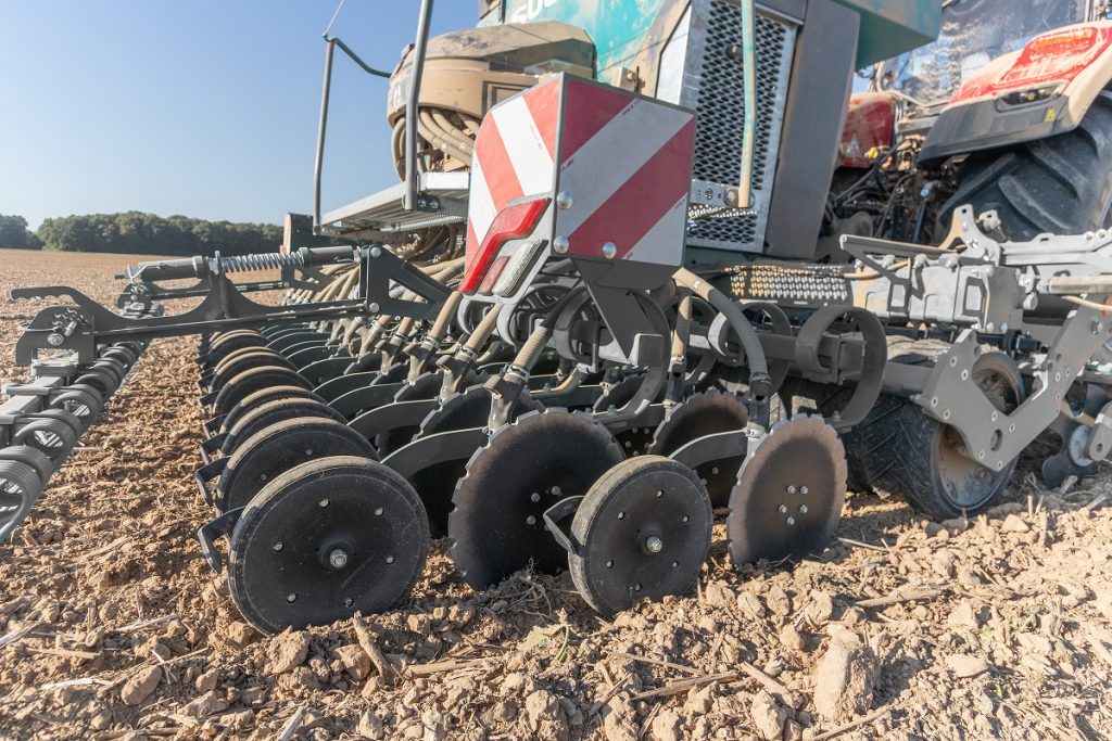 Het Twindisc zaaielement met dubbele schijven verzekert een goede behandeling voor het zaaien. De precieze plaatsing van de granen onderaan de geul, op een constante diepte, en de tegendruk van de schijven, zelfs in droge omstandigheden, bevorderen de homogene opkomst.