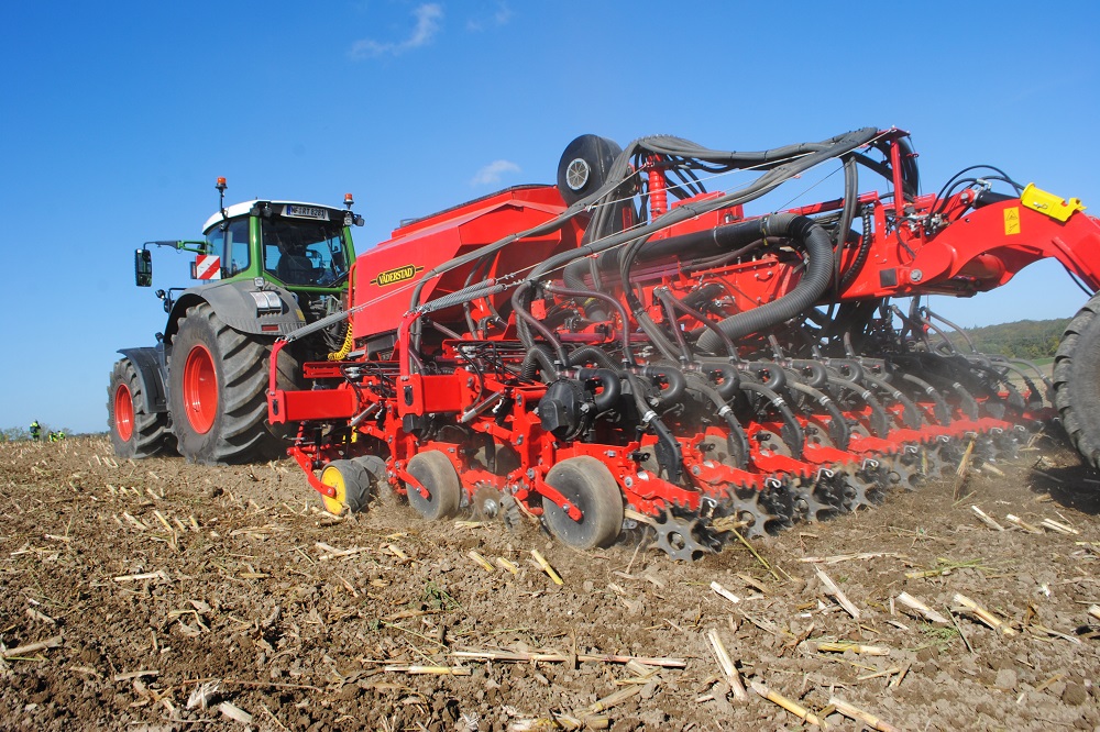 Väderstad maakte de presentatie van de Proceed al eerder wereldkundig. Nu pas is de multifunctionele zaaimachine voor eerst in actie te zien. De Proceed kenmerkt zich door het feit dat er meerdere gewassen – zoals tarwe, gerst, koolzaad, suikerbieten, erwten, mais en zonnebloemen – met één machine kunnen worden gezaaid. Dit maakt de zaaimachine in potentie zeer interessant voor loonwerkers met een diversiteit aan klanten. Ook het bemesten met kunstmest kan in dezelfde werkgang als het zaaien plaatsvinden. De machine is al getest in verschillende Europese landen. Nederland en België zijn nog niet bezocht, maar de potentie is gelijk aan onze buurlanden, verzekert Lasse Doornbos. Het kleinste zaad kan precies en op de juiste diepte worden gezaaid. De veldproeven laten zien dat er zaad en kunstmest wordt bespaard terwijl de opbrengst wordt verhoogd. “Bovendien krijg je een sterker en beter gewas en is de opkomst gelijkmatiger. Hier op onze farm in Duitsland hadden we de hoogste graanopbrengst, die we ooit hebben gehad”, vertelt Maria Redwanz van Väderstad.