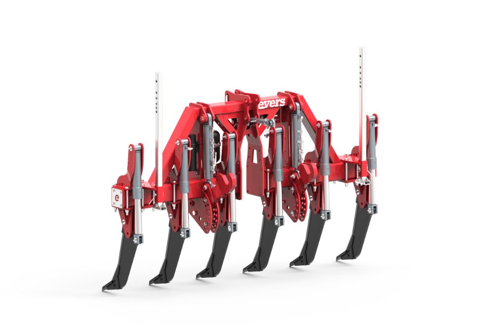 Een ‘Sneak preview‘ van de vernieuwde Forest Vario Compaction Control deelbare cultivator met slipafhankelijke diepteregeling. Evers Agro heeft de Forest deelbare cultivator/woeler vernieuwd. Wat blijft is het etageframe met de tweede rij vaste tanden. Nieuw is de optie om slipafhankelijk of trekkracht afhankelijk automatisch met Isobus aansturing de tweede rij tanden traploos uit te heffen.